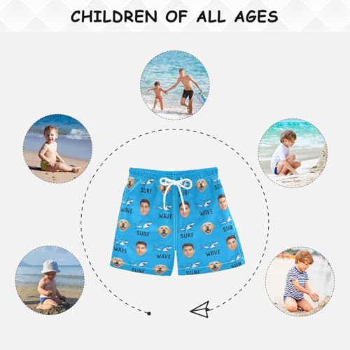 Custom Father Son Matching Swim Trunks Funny Shark Personalized Dad and Son Matching Swim Trunks Board Shorts Ligth Blue