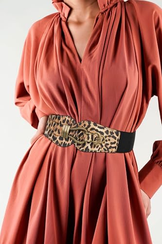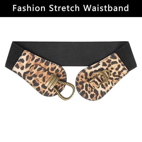 Women Wide Elastic Belt Fashion Stretchy Leopard Waistband for Dress Sweater