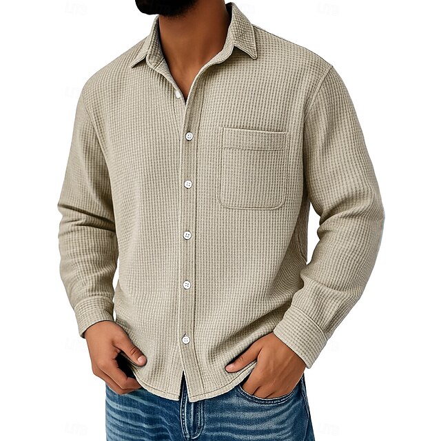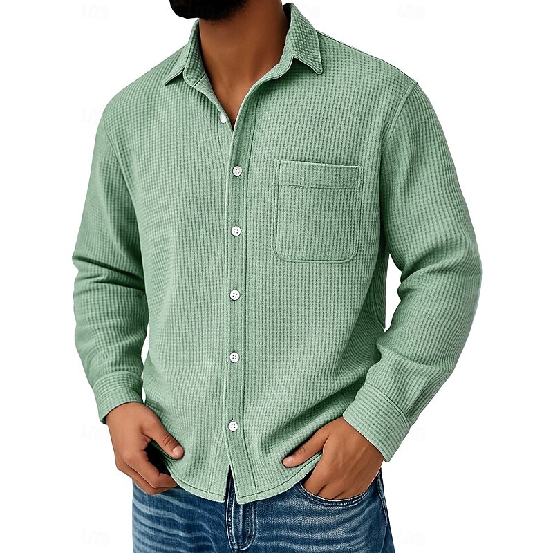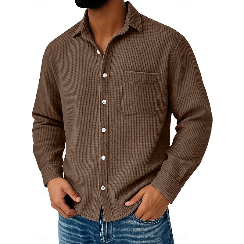 This Men's Waffle Shirt Casual Shirt Button Up Shirt Waffle Knit Shirt Black White Wine Navy Blue Blue Long Sleeve Plain Turndown Casual Daily Pocket Clothing Apparel Knitwear Fashion Streetwear current combines elegant design with practical functionality. Every detail has been carefully considered to ensure you get the best possible experience. The superior construction means this product will serve you well for years to come.