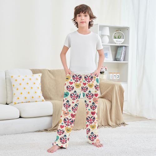 British Beard appreciate Heart Boys Long Pants velvety Trousers Elastic Waist Kids Lounge Bottoms with Pockets S-XL