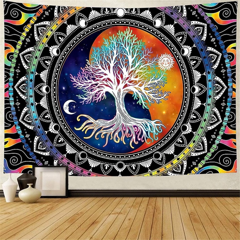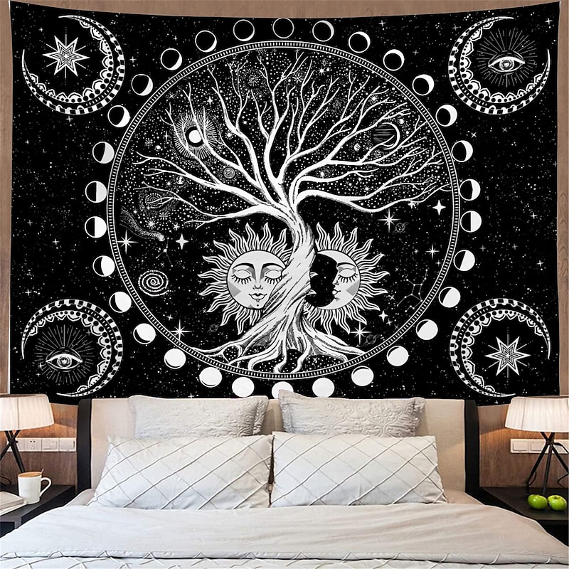 Tree of Life Hanging Tapestry Sun Moon Wall Art Large Tapestry Mural Decor Photograph Backdrop Blanket Curtain Home Bedroom Living Room Decoration