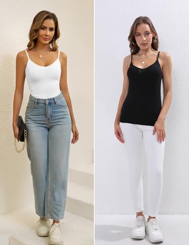 BQTQ 5 Pcs V Neck Camisole Tops for Women Spaghetti Strap Tank Top Womens Camisole Undershirt Slim Fitted Camisoles