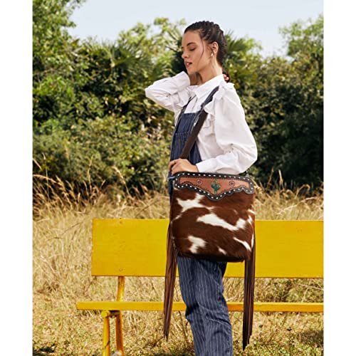 Myra Bag Western Leather Crossbody Bag for Women - Upcycled Canvas Shoulder Bag with Tassels Cutesy Cactus