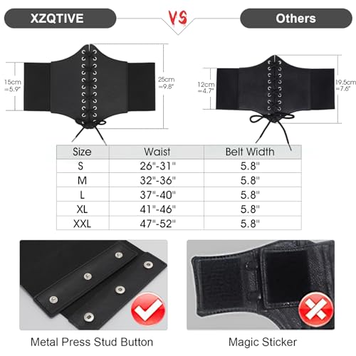 XZQTIVE Women's Corset Belt, Wide Black Brown Elastic Lace-Up Waist Cincher for Dress, Pirate Costume, Stretch Design