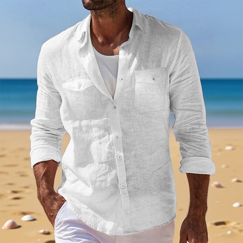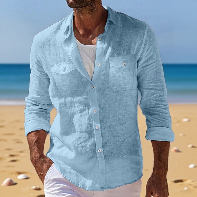 This Men's Shirt Linen Shirt Summer Shirt Beach Wear Button Up Shirt Cargo Shirt Solid Color Vacation Holiday White Blue Green Khaki Long Sleeve Lapel Summer Clothing Apparel Pocket combines elegant design with practical functionality. Every detail has been carefully considered to ensure you get the foremost possible experience. The top-grade construction means this product will serve you well for years to come.