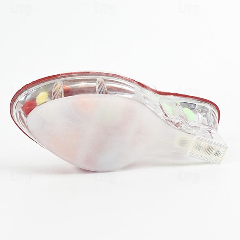 Highlights [Fabric] : Crafted with a transparent PVC upper, these wedge sandals provide a contemporary and elegant look. The durable rubber outsole enhances stability and support for everyday wear. [Style] : The sandals feature a clear wedge and platform heel, ranging from 3 to 4 inches in height, that gives an elevation of style while ensuring comfort. The open-toe, slip-on design is perfect for warm weather, offering breathability and ease of wear. [Design Highlights] : What sets these sandals apart is the playful addition of colorful pom-poms embedded within the transparent platform, adding a fun and lively vibe. The shoes are accented with a round toe shape, making them an attractive choice for modern fashionistas. [Occasions] : Ideal for vacations, casual outings, or daily wear, these wedge sandals can effortlessly add a pop of color to any outfit. Whether you're enjoying a day out or headed to a casual gathering, these versatile shoes provide both style and comfort. [Size Notice] : Available in a variety of sizes, from US5.5 to US10.5, the sandals cater to a wide range of foot sizes, ensuring a perfect fit for women looking to make a contemporary statement. Perfect for everyday use. first-class materials and excellent craftsmanship ensure long-lasting durability.