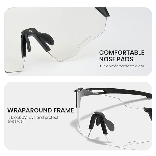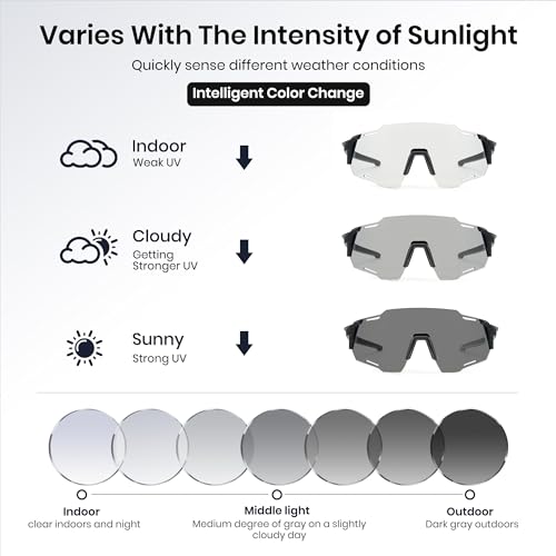 Origin: ImportedPhotochromic Glasses:The lens adjusts from clear to dark gray based on UV intensity, with changing color coatings. They reduce light transmission from 85% to 15%, protecting eyes in bright sunlight. Note: Lens darkness varies with UV levels.Full UV400 Protection & Impact-Resistant Build: Made with high-grade lenses and lightweight frames, these cycling sunglasses offer full UV400 protection. They block 100% UVA & UVB rays and protect your eyes from harsh sunlight, wind, and debris.Comfortable & Flexible Fit for All Face Shapes: Soft rubber nose pads and flexible temples ensure a snug, non-slip fit for various face shapes. Designed for long-lasting comfort even during intense movement.Adjustable Strap for a Secure Fit: Equipped with an adjustable cycling strap, these sunglasses stay securely in place during any outdoor activity. Perfect for cyclists, mountain bikers, and athletes who need a stable fit without worrying about sliding glasses.Versatile for All Outdoor Activities: Ideal for cycling, running, mountain biking, driving, skiing, hiking, baseball, golf, climbing, tennis, and more. A reliable eyewear choice for any sport or adventure. Perfect for everyday use. High quality materials and excellent craftsmanship ensure long-lasting durability.