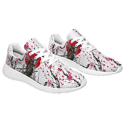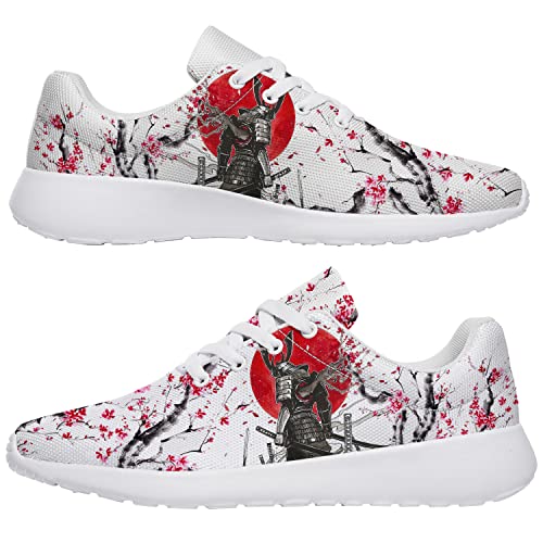 Japanese appreciate Shoes Mens Women Tennis Running Sneakers Japanese Samurai Pink Sakura Print Golf Walking Shoes Gifts for Birthday,US Size 12 Men