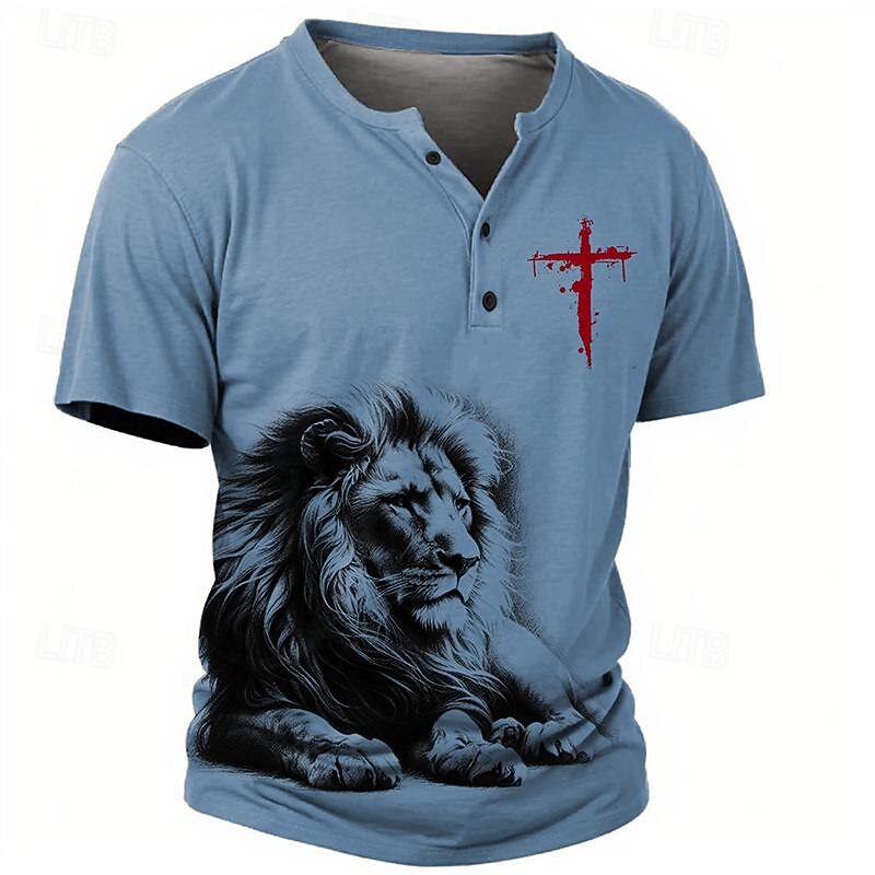 Why Choose Men's Graphic Lion Cross T shirt Henley Shirt Short Sleeve 3D Print Retro Vintage Casual Sports Outdoor Holiday Going out Spring & Summer Blue Sky Blue Khaki Gray Henley Henley T-Shirt?