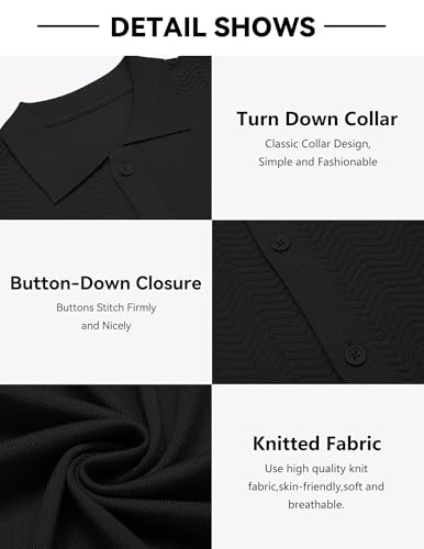 COOFANDY Mens Knit Short Sleeve Shirt Casual Button Down Shirt Vintage Fashion Polo Shirts Crochet Summer Beach Shirts