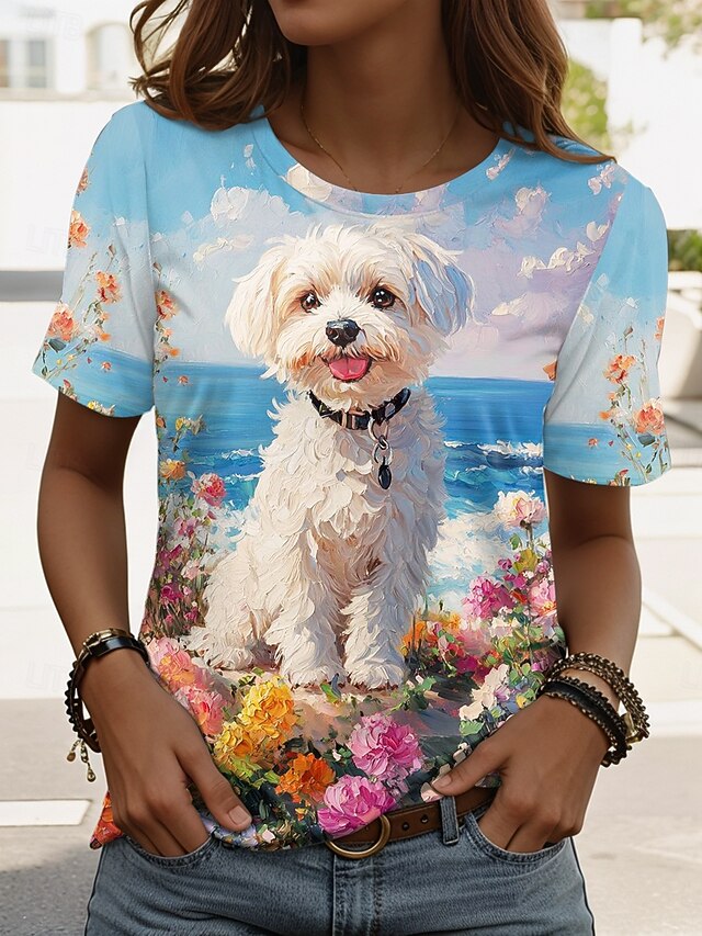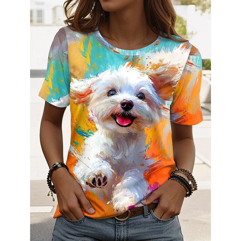 This Women's T Shirt Graphic Animal Dog sleek Classic Casual Short Sleeve Crew Neck Regular Tops Daily Weekend Print Grass Green Blue Dusty Blue Orange Green Summer Spring combines elegant design with practical functionality. Every detail has been carefully considered to ensure you get the best possible experience. The excellent construction means this product will serve you well for years to come.