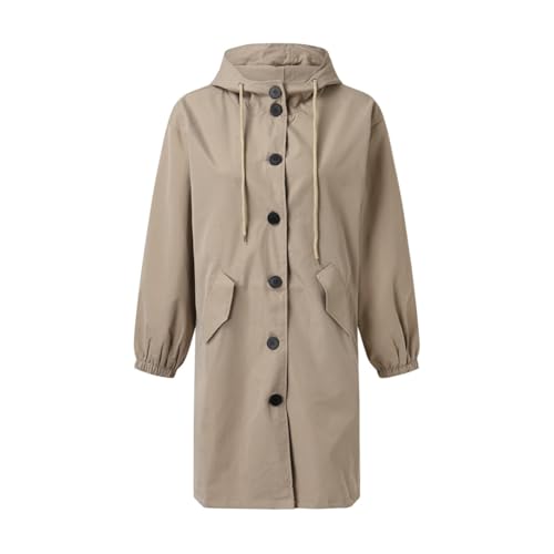 Women's Mid Length Trench Coat, Lightweight Hooded Trench Coats, Women's Coat Lapel Button Down Pedcoat