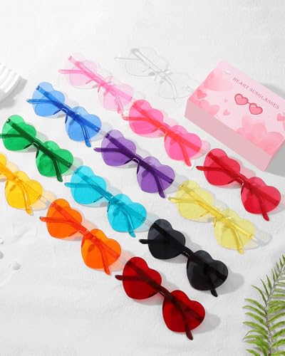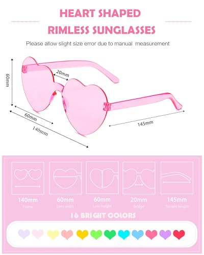 16 Pairs Heart Shaped Sunglasses Candy Color Rimless Fun Heart Glasses for Women Party Favors