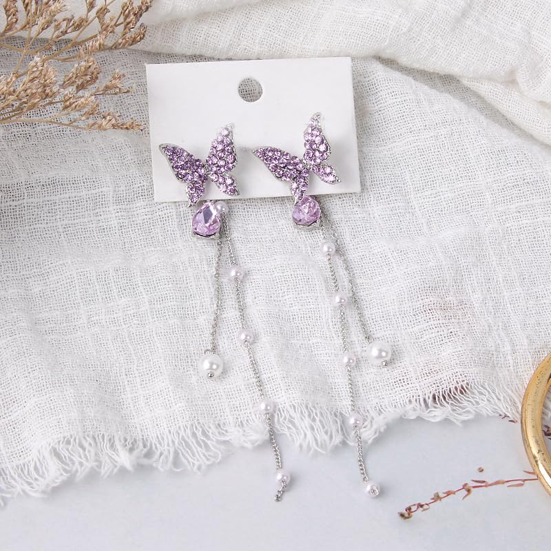 Why Choose Purple Butterfly Earrings for Women - Dangle Long Silver, Blue, Gold, White Sparkle Earrings - Cute Fairy Butterfly Jewelry?