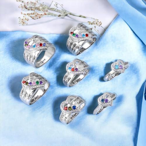 925 Sterling Silver Personalized Mothers Ring with 2 Birthstones Custom Engraved Name Engagement Wedding Promise Rings for Women Mothers Day Birthday Gifts for Mom Grandma Wife